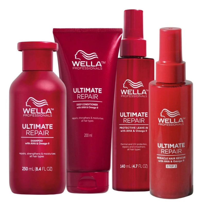 Découvrez la puissance réparatrice du Coffret Ultimate Repair de Wella Professionals : un rituel complet en 4 étapes pour restaurer, protéger et sublimer les cheveux abîmés ou traités chimiquement. Chaque soin est enrichi en AHA et Oméga-9 pour une réparation en profondeur et une brillance visible dès la première application.
