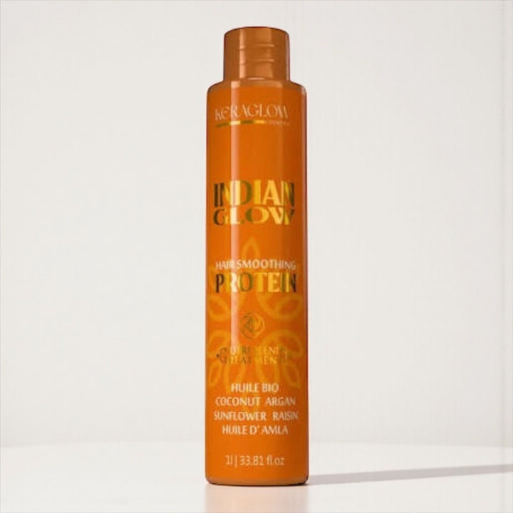 Découvrez le lissage indien Keraglow : un lissage de type brésilien sans formol, enrichi en huile d’amla et en huiles végétales sélectionnées (coco, argan, tournesol, extraits de tanin). Il offre une hydratation optimale, une brillance miroir et une détente de la fibre jusqu’à 100 % selon la nature des cheveux.